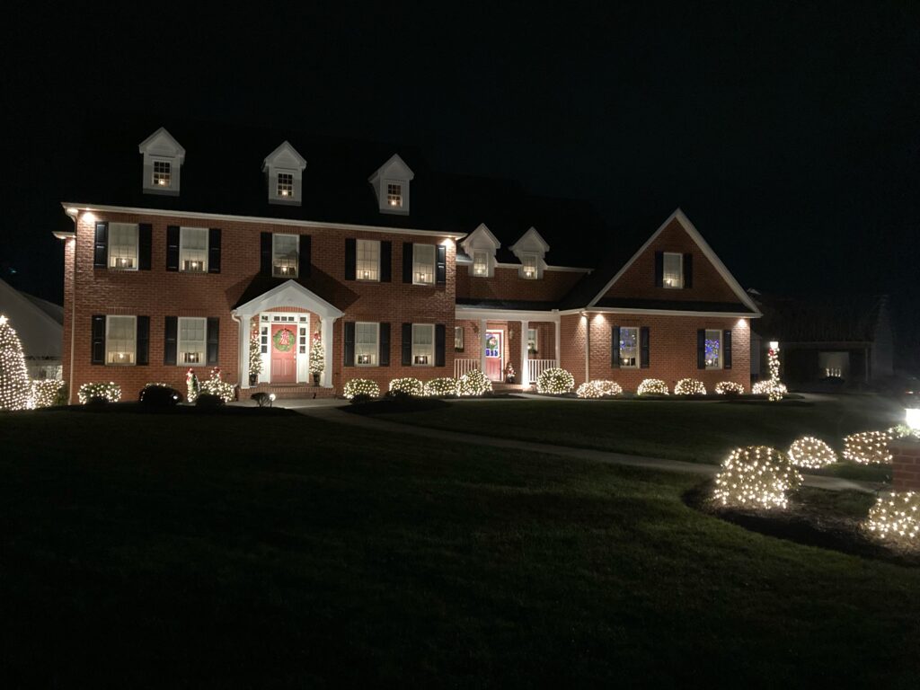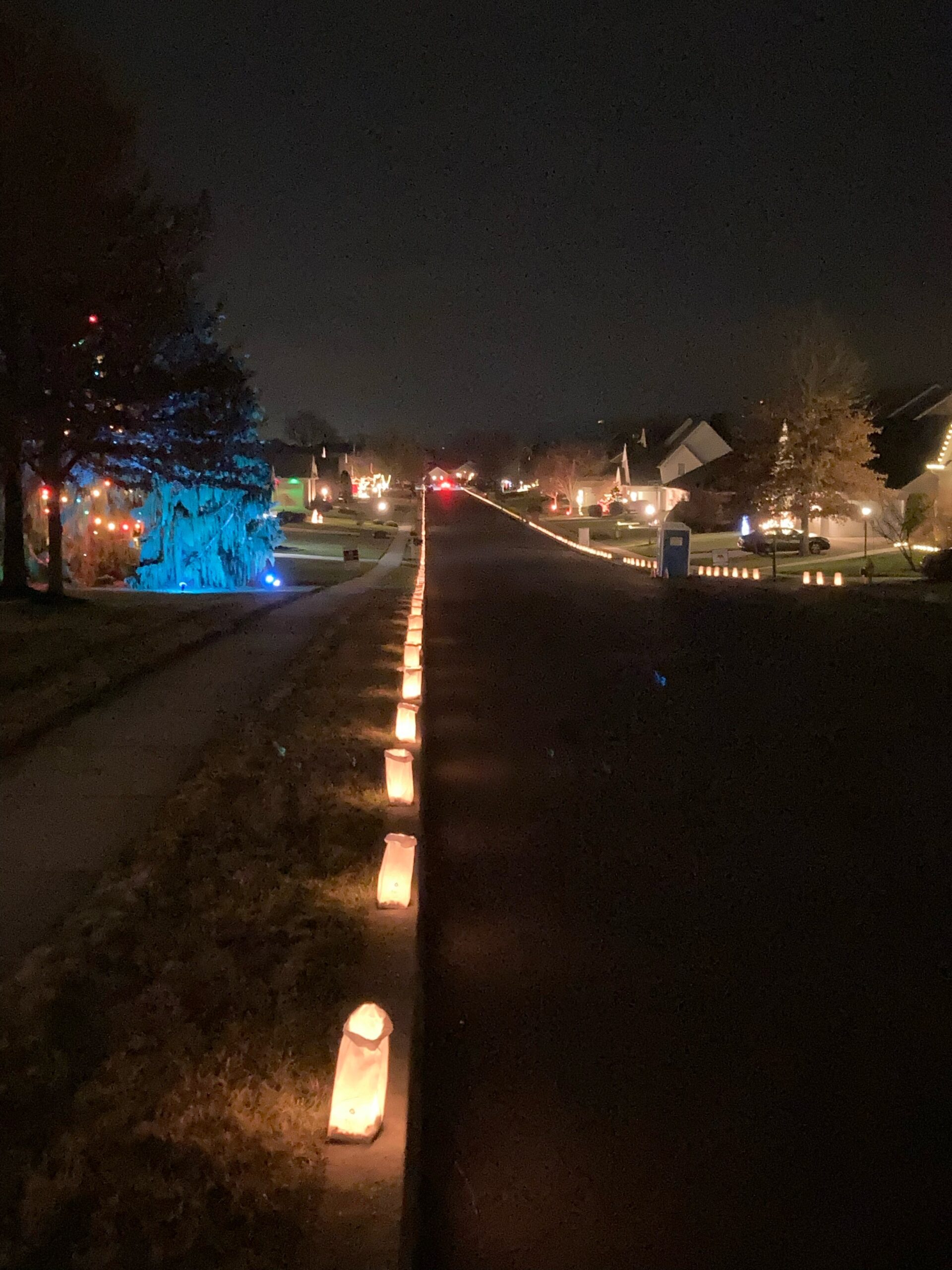 Neighborhood features many decorated houses. On Christmas Eve, most houses display luminaries along the curb/sidewalk.